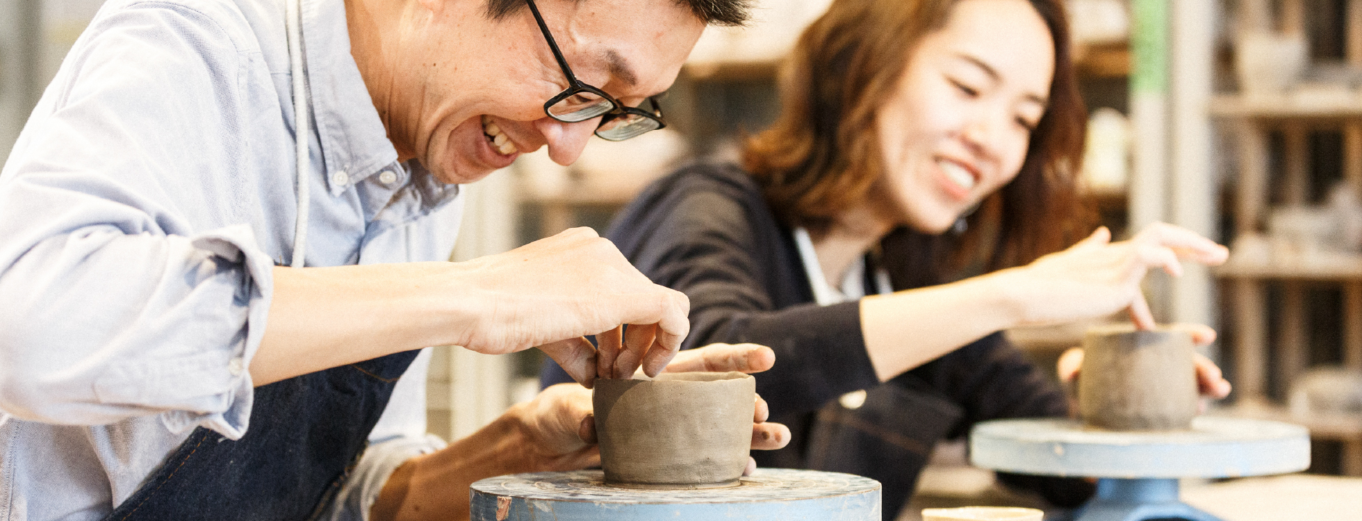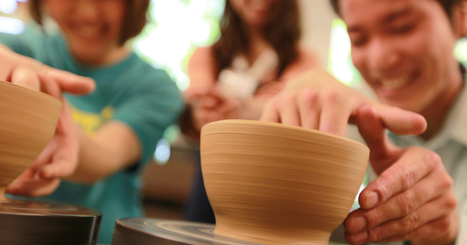 幼い頃に誰もが一度は体験したことがある土遊び。土に触れていると、子どもの頃の自由な感性が蘇ってくるようです。最初はぎこちない手つきでも、土に触れているうちに夢中になるもの。微妙な力加減で形を作り上げていく陶芸は、目の前の作品づくりに没頭することで、心身のリフレッシュになります。