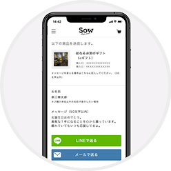 LINEやメールで相手にeギフトのURLを送信します。URLは、マイページや注文確認メールでも確認できます。