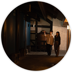 酒蔵見学は、築100年以上の趣きある建物の中へ。案内するのは同蔵元の社長、もしくは杜氏が担当します。普段は立ち入ることができない酒蔵内部の仕込蔵まで見学することが可能です。通常10月下旬から3月中旬が醸造期間で、この期間は仕込み作業を間近で見学することができます。発酵中のもろみの香りや泡が弾ける音もじっくりと感じてください。(夏場は貯蔵のみ)