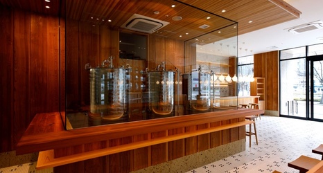 日本酒バーテンダーが立つカウンター前の壁には、25本のタップ(蛇口)が設置され、そこからフレッシュな生酒が注がれます。富山が誇る日本酒の飲み比べができ、それぞれの香りや味わいの違いなどを発見できるでしょう。