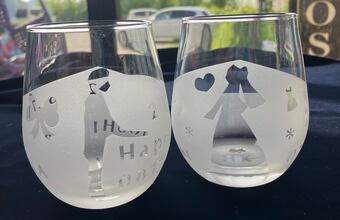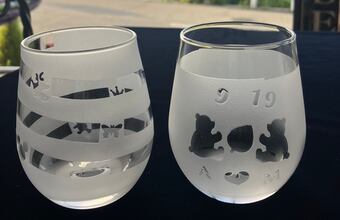 ガラス素材を絵柄や文字などの形でマスキングし、粒子状の鉱物を吹き付けて削ることで模様をつける「サンドブラスト」を体験できるコースです。このコースでは、好きな模様入りのコップを作ります。