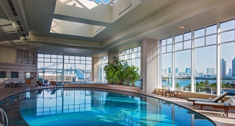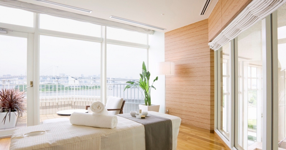 東京湾を望む美しいパノラマビューが魅力の「ヒルトン東京お台場」。同ホテル5階にある「庵スパ TOKYO」は、日本らしいおもてなしを追求するスパで、屋内プールや屋内・屋外ジェットバス、それにアロマミストサウナとドライサウナを完備しています。