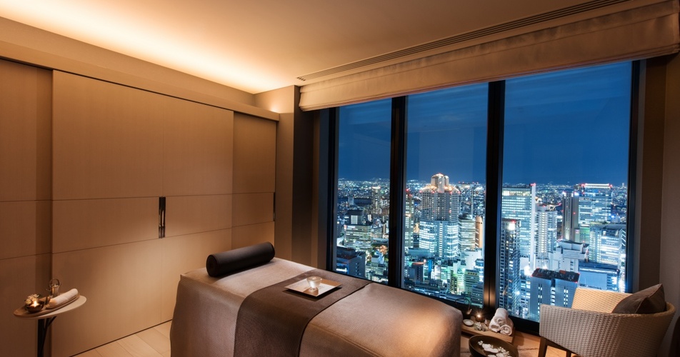 同スパでは大阪都市部の街並みはもちろんのこと、海や山々までをも望める超高層階ならではの美しい景色が印象的。本コースでは、通常宿泊客と会員のみが利用できるジェットバスやサウナが利用でき、その後にトリートメントが受けられます。
