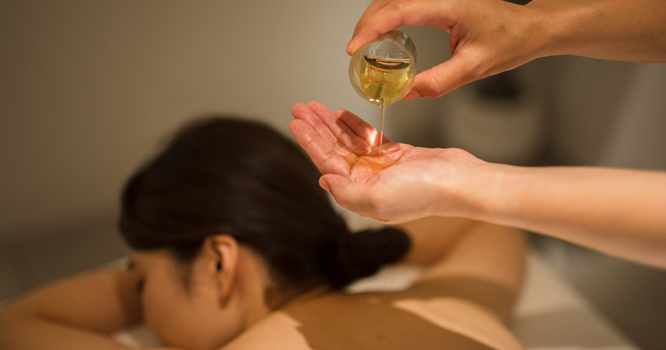 温泉でリラックスした後は木目調のトリートメントルームへ。ボディトリートメントでは季節ごとに異なるブレンドのアロマを使用します。ペパーミントで清涼感を高めたり、ジンジャーで体を温めたり.....。その季節にぴったりの香りと熟練のセラピストによる手技で心身のバランスを整えます。