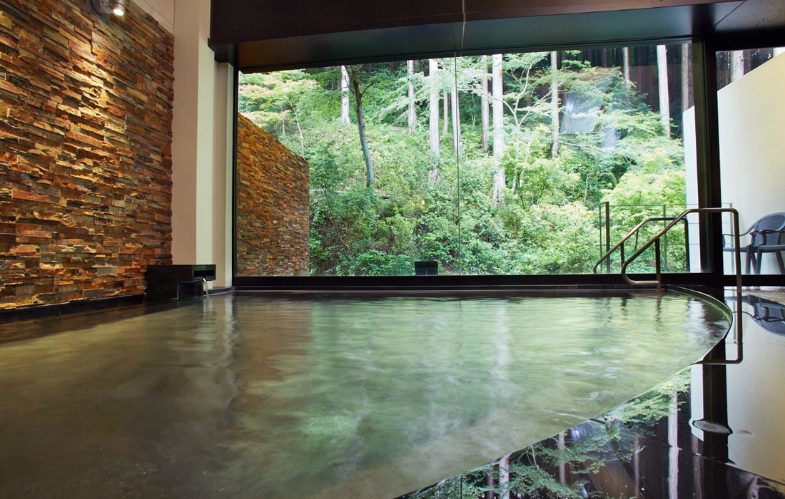 芦ノ湖唯一の自家源泉である「つつじの湯」は、美肌の湯と言われるアルカリ性単純温泉。床から天井まで明るいガラス張りの大浴場で、豊かな木々に囲まれた露天風呂ではまるで森林浴をしているかのよう。湯船に浸かりながら、木々の緑や木もれ日、山の匂い、鳥のさえずりなどを全身で感じることができます。