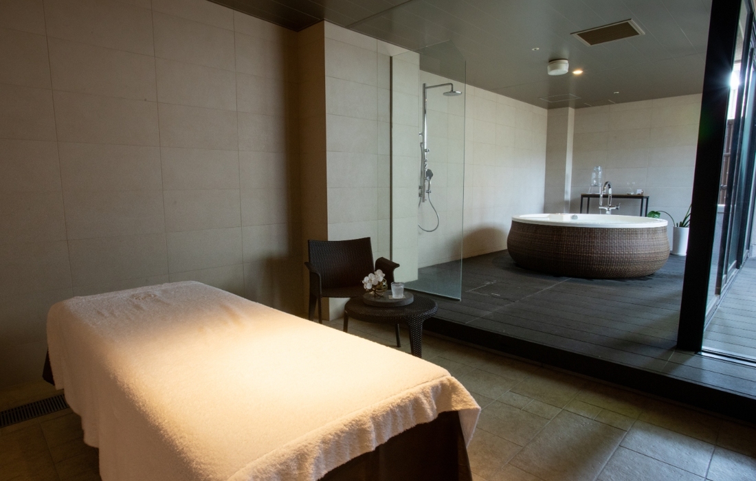 遠方からの常連客も多いという「スパエレクレア」は、利用者だけが案内される隠れ家のような場所。ヒノキの香り漂うプライベートジェットバスで温まり、その後は好みの香りに包まれてボディトリートメントを。そして足裏リフレクソロジーが堪能できます。