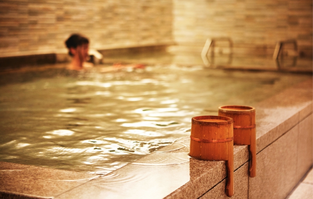 まずはホテルの日本式浴場で温浴を。まるで高級旅館を思わせるような伝統的な大浴場です。ドライサウナやスチームサウナも完備しています。