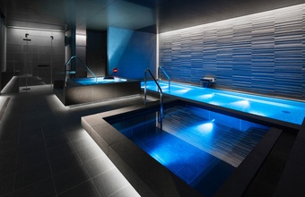 当コースでは施術前または施術後のどちらか60分間、温浴施設を利用できます。バスルームは都会の洞窟をイメージした幻想的な空間で、人工炭酸泉や人工温泉、それにドライサウナやスチームサウナなどが備えられています。