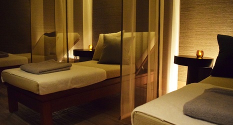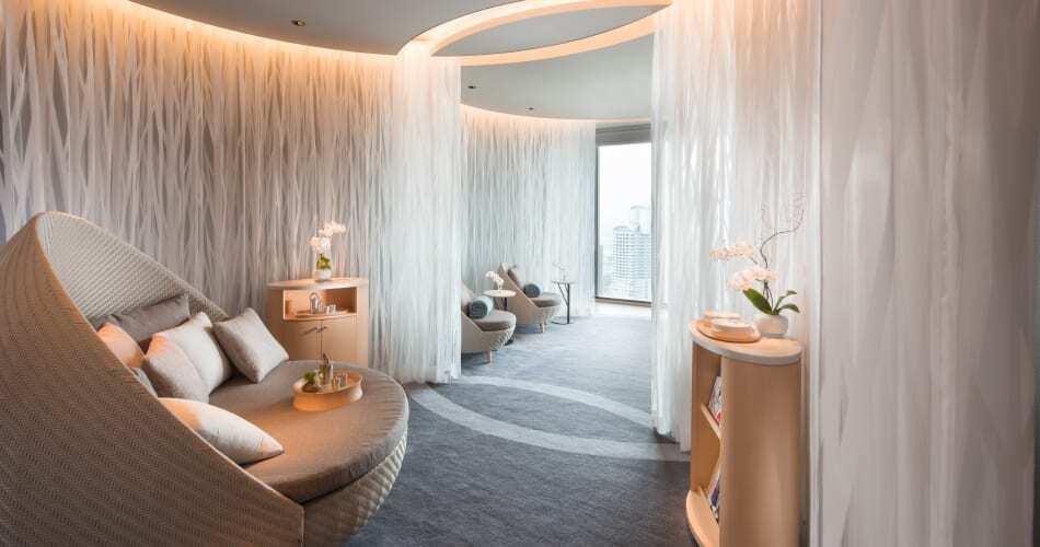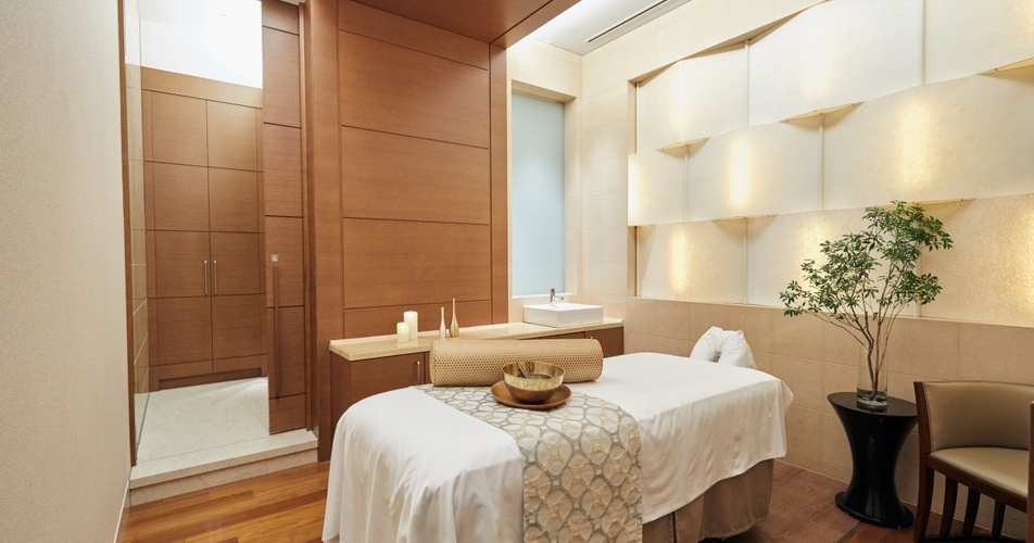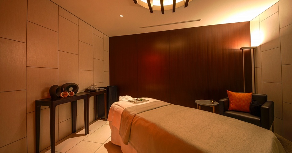 温浴後は「MEGURI SPA & WELLNESS」のスパルームへ。モダンでスタイリッシュな空間は、一歩足を踏み入れると心地よい香りが広がります。