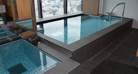 まずはホテルの日本式浴場で温浴を。まるで高級旅館を思わせるような伝統的な大浴場です。ドライサウナやスチームサウナも完備しています。