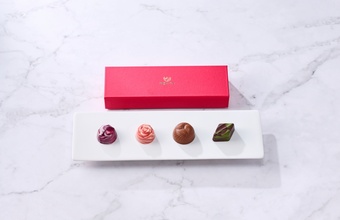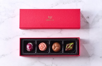 オリジナルロゴ付きの鮮やかなカラーボックスに、多彩な4種類のショコラを詰め合わせたアソート。その日の気分に合わせてお好みのフレーバーを選び、ゆったりとしたひとときをお楽しみください。