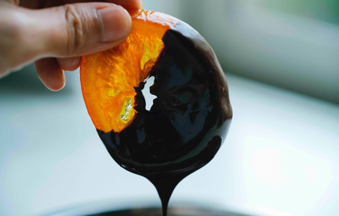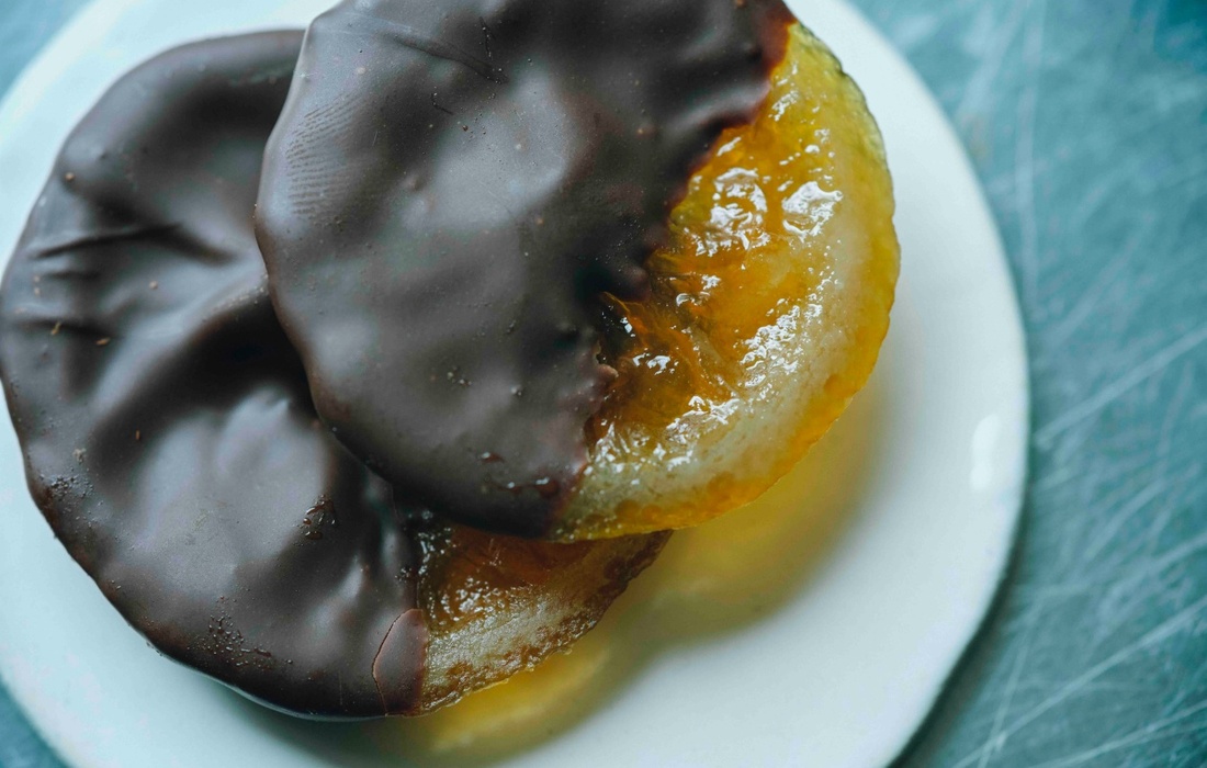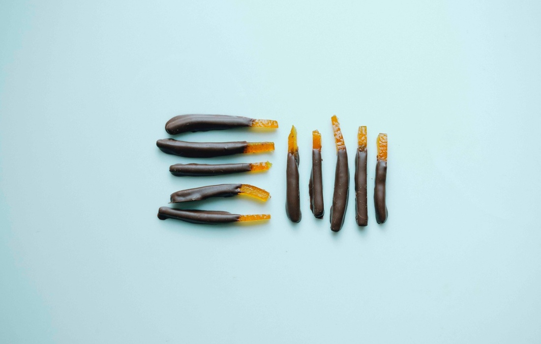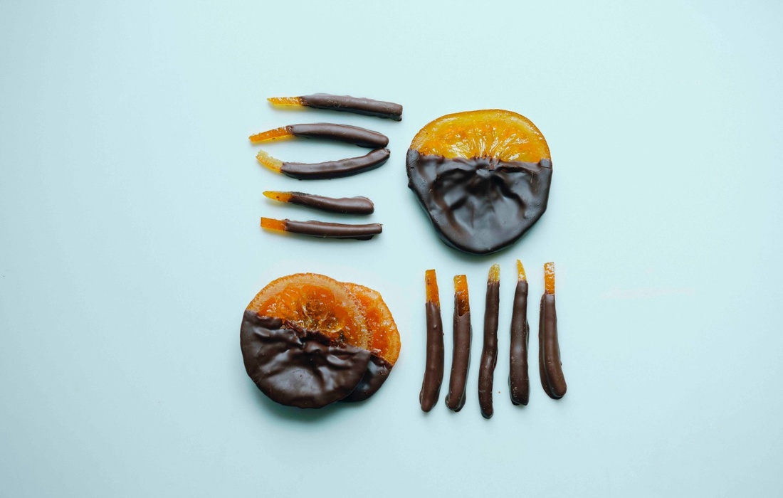 柑橘の香りや風味を損なわないよう、仕込みから仕上げまですべて手作業で行い、一週間以上かけて少しずつ糖度を高めています。また、品種ごとの香りを生かすため香料や洋酒不使用、コーティングするチョコレートも柑橘の個性に合わせて使い分けるなど、細やかな工夫が重ねられています。