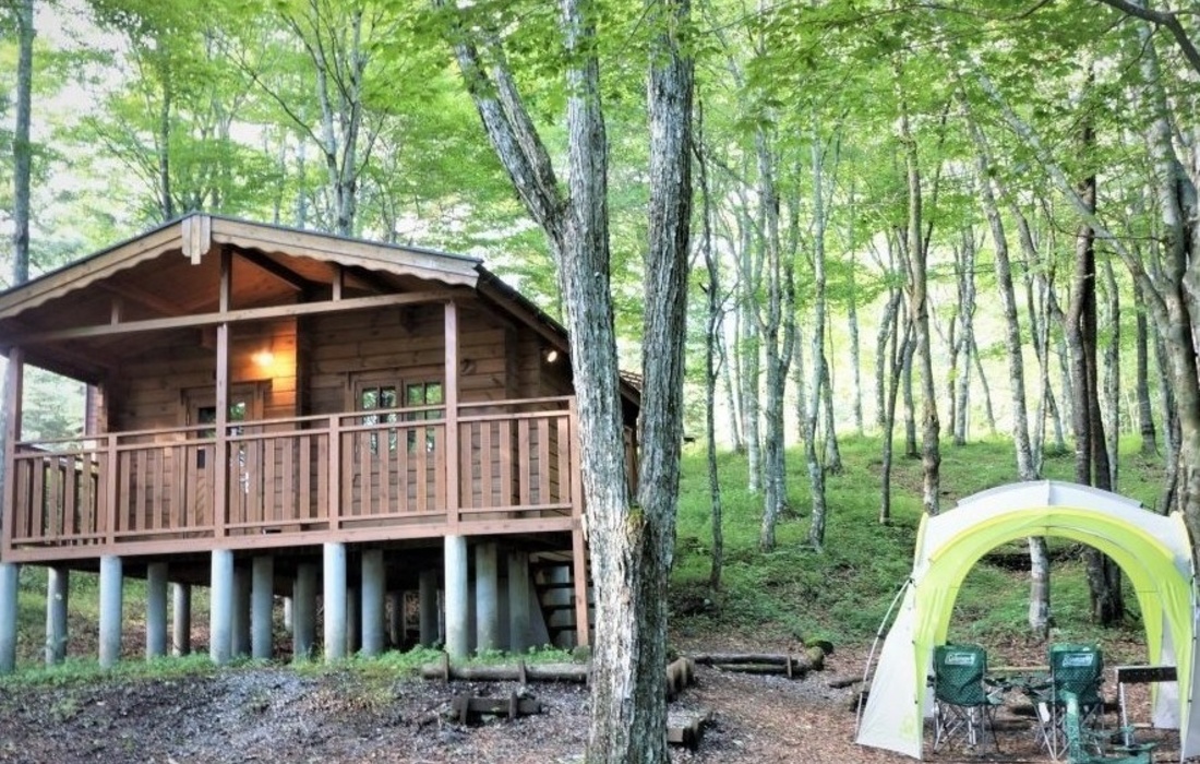 富士山周辺を中心に、アウトドアリゾート施設を展開する「PICAリゾート」。当コースでは、その中の一つである「PICA 表富士(おもてふじ)」のログコテージ・デラックスに1泊(素泊まり)できます。