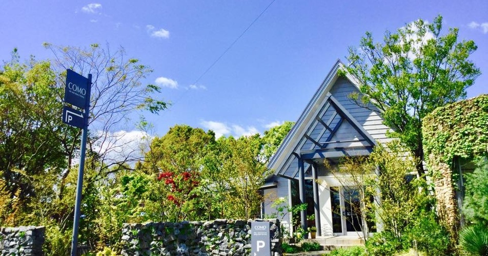 空港があり、高知県の玄関口である南国市。その中心地から少し離れた、自然豊かな場所に建つライフスタイルショップ&ダイニング「COMO」。新築やガーデン施工などを得意とする会社が経営し、建物から庭までこだわりの空間が広がります。