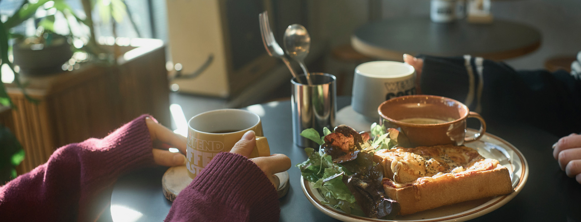 おいしい時間を一人で心ゆくまで満喫することも、友人やパートナー、両親や子どもなど、誰かと一緒に共有することもできます。楽しみ方はその人次第。モーニングやランチはもちろん、夜にお酒を楽しめるカフェもあります。