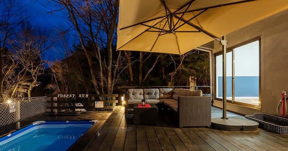 森の中にある一棟貸しの別荘タイプの宿、「VILLA FOREST RUN(ヴィラ フォレスト ラン)」。多頭飼いの愛犬家が利用できる宿泊施設が少ないと感じたオーナーが、自身の体験を踏まえ、作られた施設です。大阪市内から車で約90分と程よいアクセスにあるのも魅力。