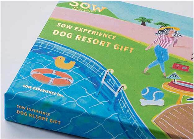 リゾート感のあるイラストに箔押しを施した貼り箱です。旅が終わっても取っておきたくなるパッケージを目指しました。