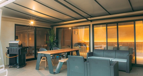 2つのベッドルームやシアタールーム、ドッグプレイルームがあるなど、ゆったりと豪華な作り。最大定員6人、愛犬は頭数無制限で宿泊できます。屋根付きのウッドデッキではバーベキューも可能です。また、屋外にはプライベートドッグランやプール、屋内のプレイルームにはトンネルやスロープなどの犬用遊具があったりと、愛犬家オーナーが手がけたからこその魅力です。