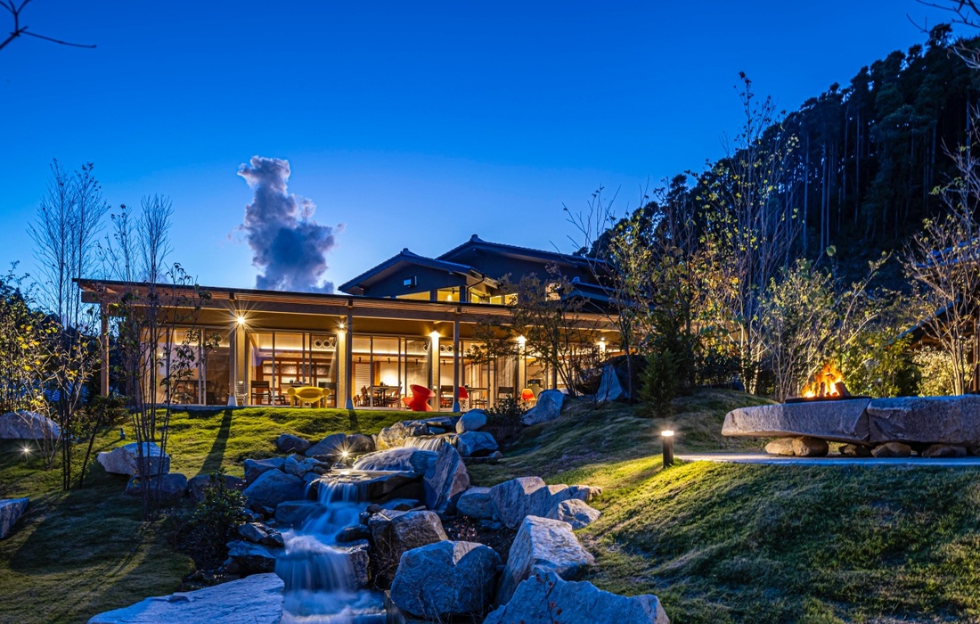 都心から車で約90分、房総半島南部に位置する千葉県いすみ市。田舎を感じる原風景の中にあるのが、全室温泉付きのリゾート施設「五氣里-itsukiri-(いつきり)」。