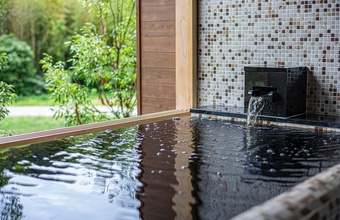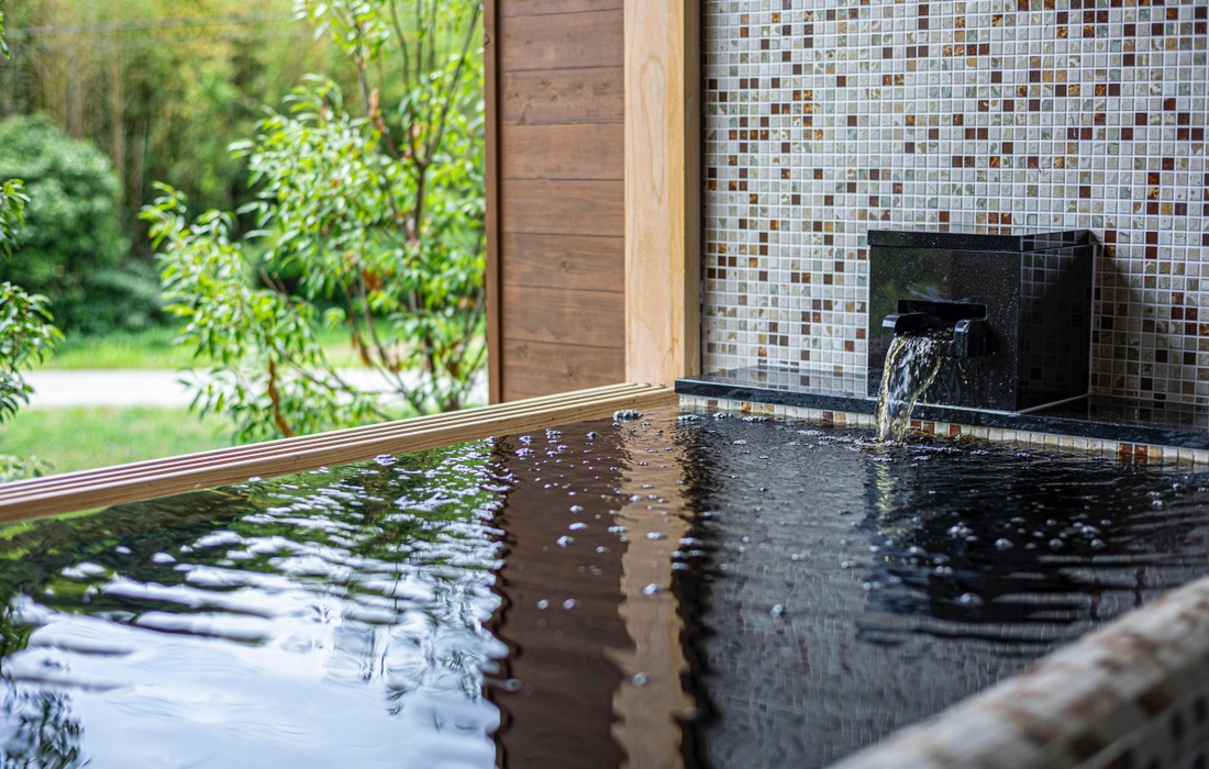 同施設の魅力は、なんといっても美肌の湯と言われる全国的にも希少な黒湯。地下300メートルからくみ上げた温泉は、まるで化粧水のように肌あたりが滑らかで、とろりとした泉質が特徴です。全室に温泉がひかれている上に、2種の天然温泉がある大浴場も利用可能。内風呂、露天風呂、サウナ、水風呂と充実のラインナップで、じっくりと旅の疲れを癒やすことができます。