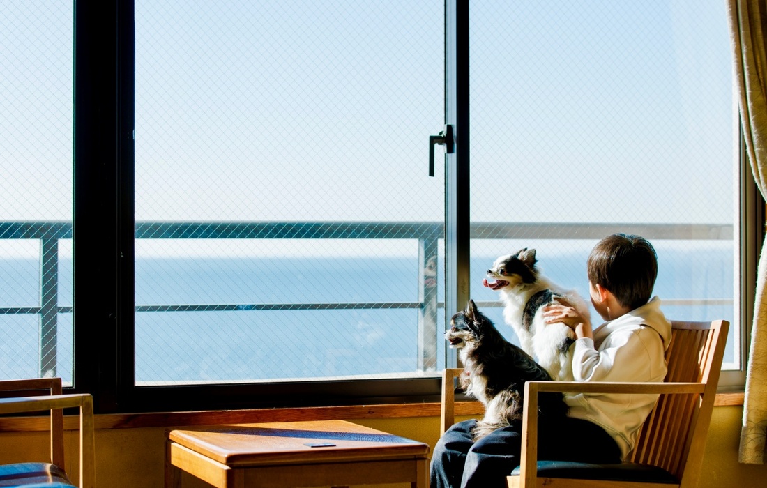 名古屋市内から車で約60分の距離にあり、関西や関東など幅広いエリアから来る方がいる「みかわ温泉海遊亭」。どこか懐かしさを感じる和室の部屋は、全室オーシャンビュー。窓からは夕日の沈む姿が見えたり、畳の上で愛犬と横になりながら波の音に癒されたりと、ひたすらゆったりと過ごせる空間が最大の魅力です。また、料理を手がけるのは、名古屋の一流料亭で修業を積んだ和食一筋の料理長。メニューの考案から素材の選定、調理方法まで試行錯誤を繰り返して出来た創作会席を振る舞います。全国有数の優れた漁港としても有名な三河(みかわ)湾の新鮮な食材をお楽しみください。