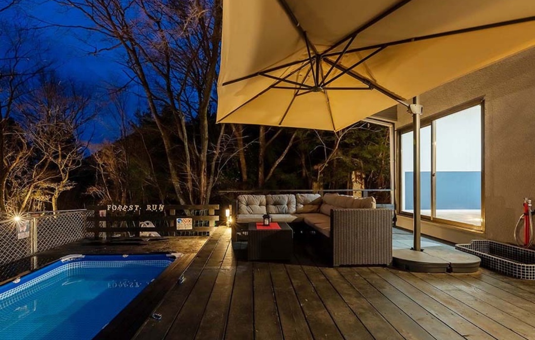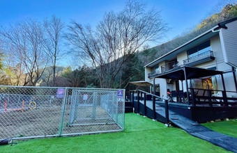 森の中にある一棟貸しの別荘タイプの宿、「VILLA FOREST RUN(ヴィラ フォレスト ラン)」。多頭飼いの愛犬家が利用できる宿泊施設が少ないと感じたオーナーが、自身の体験を踏まえ、作られた施設です。大阪市内から車で約90分と程よいアクセスにあるのも魅力。