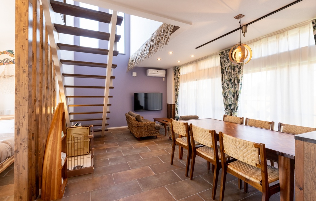 | 紹介文 | 都内から高速で約1時間でアクセスできる房総半島南部のコテージ「わんpaina(わんパイナ)」。設計士でもある愛犬家オーナーが設計したヴィラです。ハワイ島をテーマにした内装が、リゾート気分を盛り上げてくれます。 |