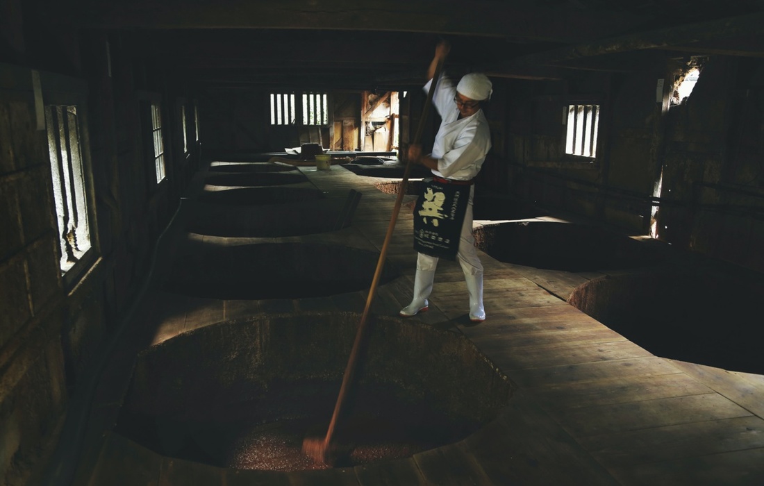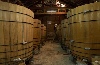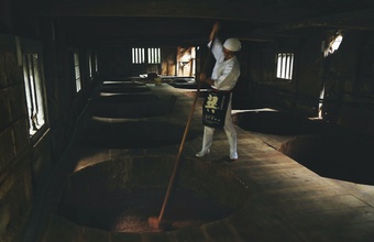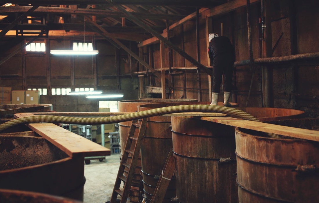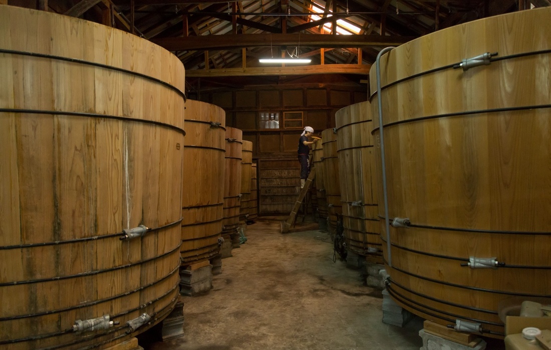 梶田商店では、原料の仕入れからすべての工程を自社で行うという、現代では珍しいスタイルを大事に守り続けています。また、一般的なしょうゆが半年という短期間で作られる一方、こちらのしょうゆ蔵では 100年以上受け継がれてきた杉桶を使用し、1年から2年かけて熟成された天然醸造のしょうゆが作られています。
