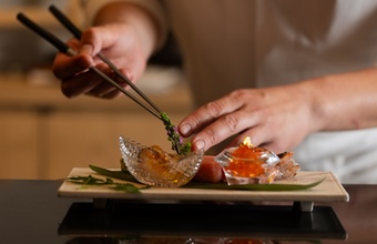 落ち着いた和の空間で、こだわり抜いた食材と熟練の職人の技を掛け合わせた料理の数々を楽しむ、ぜいたくなひとときをお楽しみください。