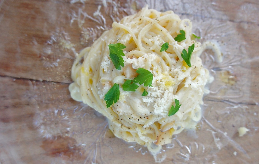 冷製ヴィーガンカルボナーラ風ソース スパゲティーニ