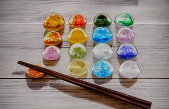 キャンディボウル作りは、材料、技法ともに工房が独自開発した内容で、約280種類の色彩豊かなガラスパーツを自由に組み合わせ、世界に一つだけの器を作り上げる体験です。