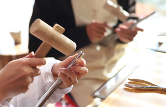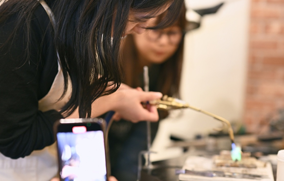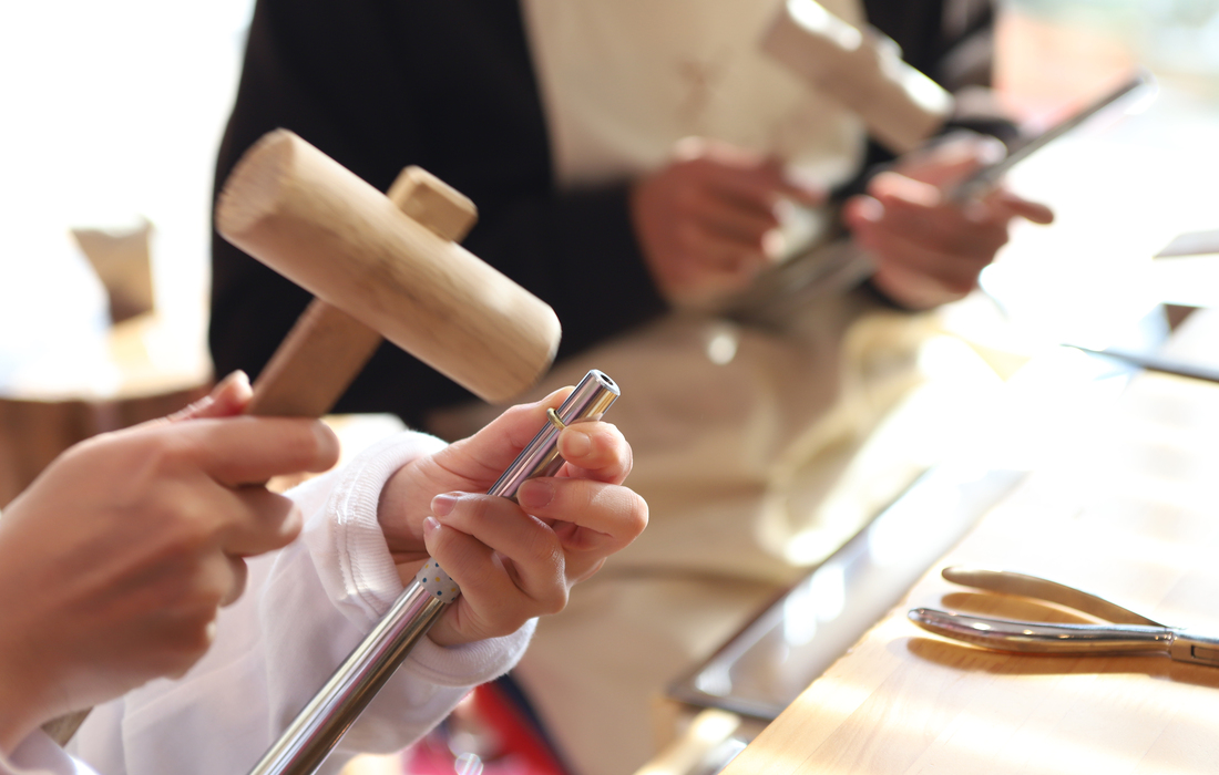 ジュエリーの専門学校を卒業した知識豊富なスタッフが、指輪作りをしっかりサポート。店舗の机は職人が使用する本格的な彫金机を採用しており、指輪作りに最適な環境でこだわりの指輪を作ることができます。