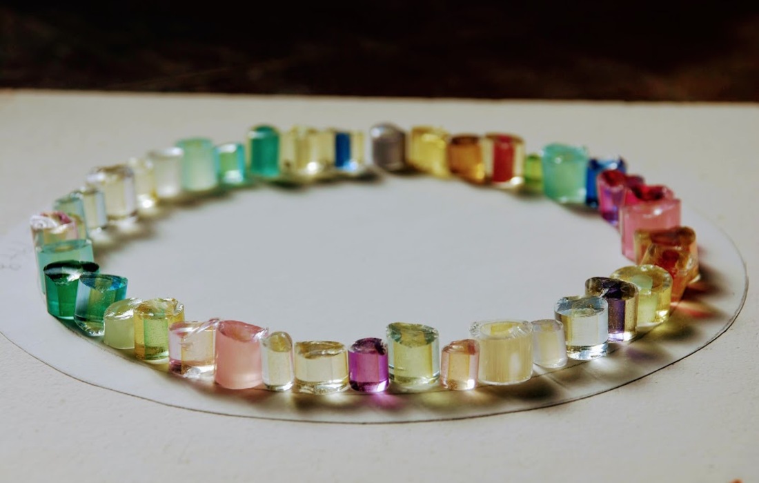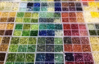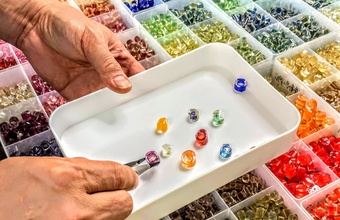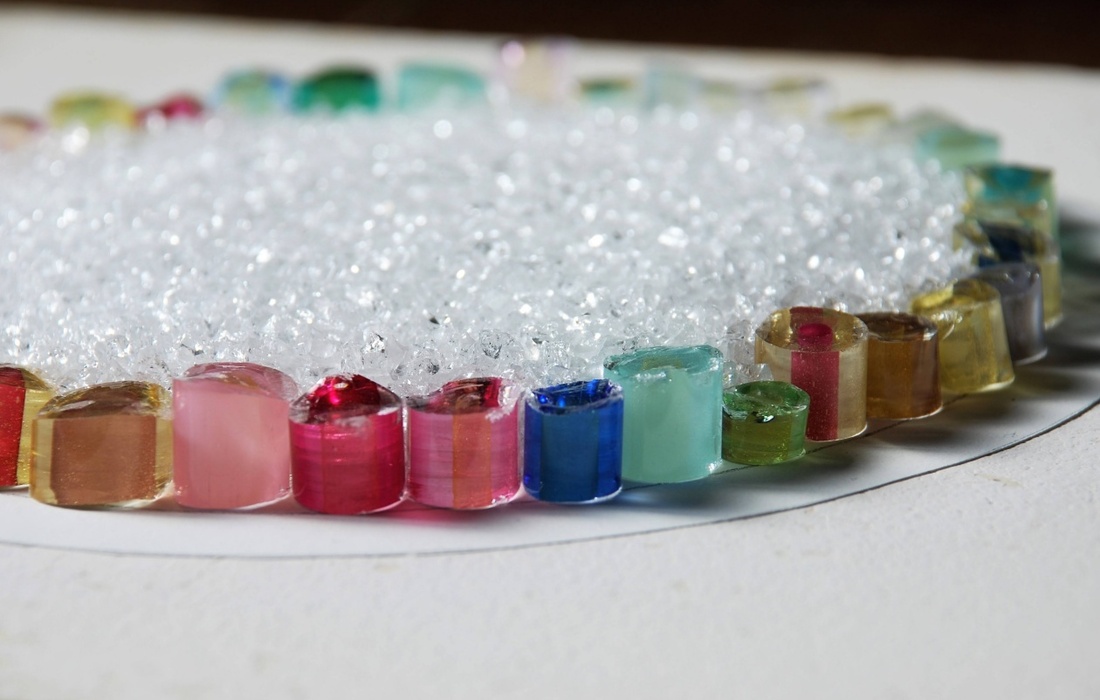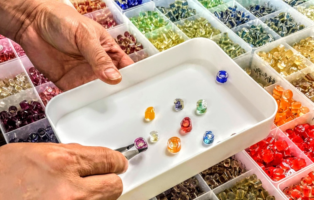 キャンディボウル作りは、材料、技法ともに工房が独自開発した内容で、約280種類の色彩豊かなガラスパーツを自由に組み合わせ、世界に一つだけの器を作り上げる体験です。