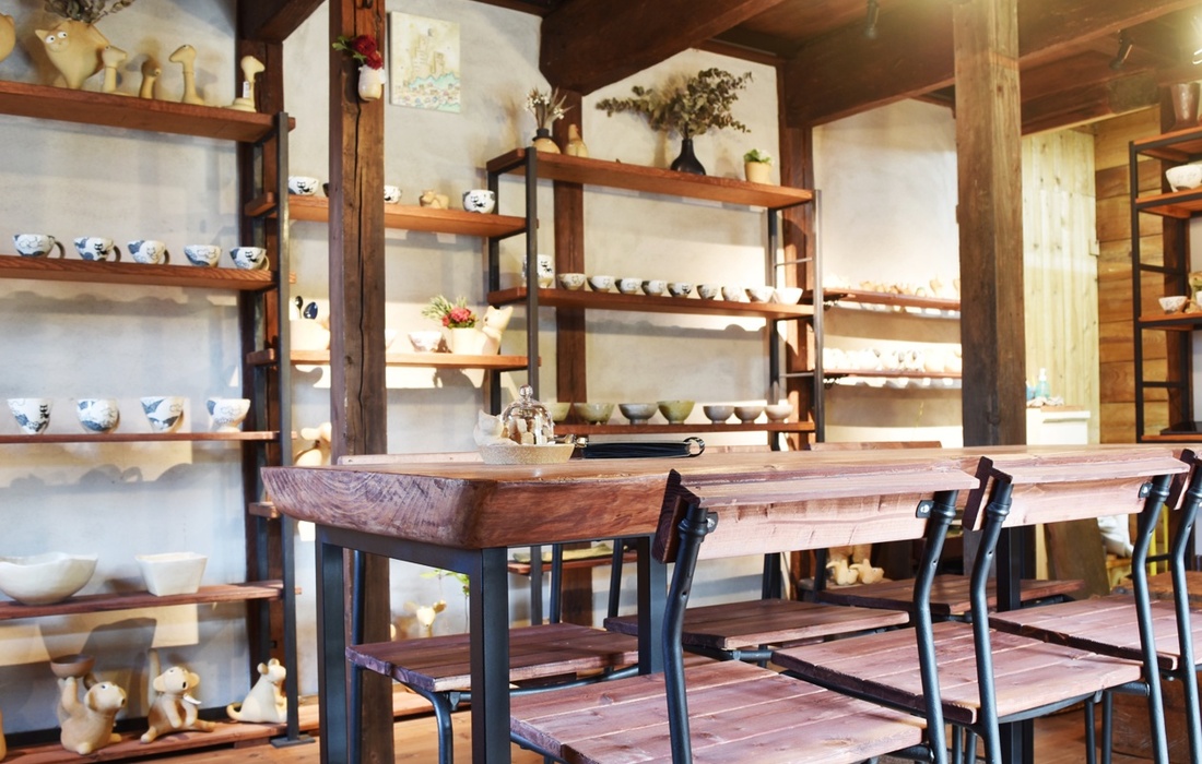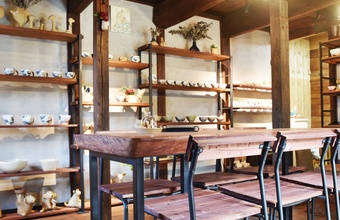 | 紹介文 | 土と布、異なる素材への夫婦の情熱が織りなす「陶・染 きとゆ工房」。夫・圭さんが手がける深みのある「やきもの」と、妻・純子さんが命を吹き込む温かみのある「ぬのもの」。2つの世界が響き合う、特別な場所です。蔵をリノベーションした工房ギャラリーでは、動物をモチーフにしたオブジェやうつわ、天然素材を染めてつくる洋服やスカーフなどを展示・販売しています。 |