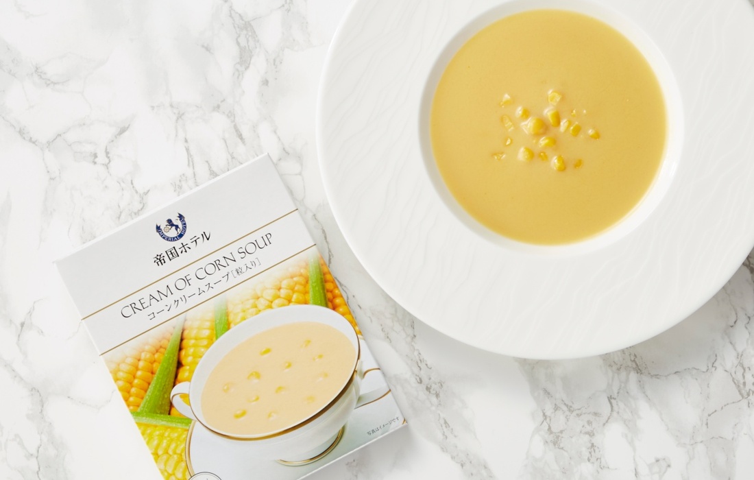 コーンの香りと甘味を充分に引き出し、帝国ホテル独自の製法でクリーミーに仕上げました。粒よりのコーンを加えており、シャキシャキとした食感を楽しめます。