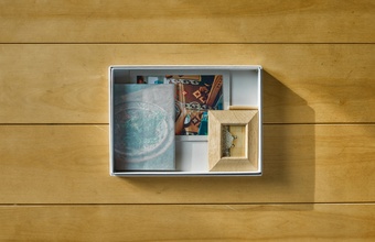 銀塩写真は、「一日を残す」ことを形にしたオリジナルのフォトボックスに入れてお届け。さらに、151画が選んだ台紙付きの1枚に加え、木製のミニ額もセットに含まれています。楢の天然木を使用した温かみのあるミニ額は、飾る場所を選ばず、さまざまな空間にやさしく馴染みます。