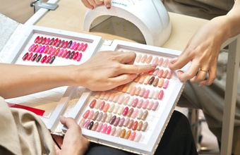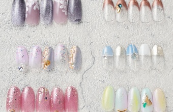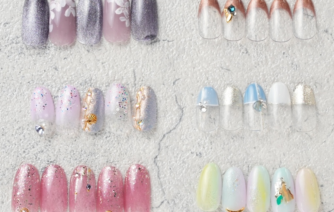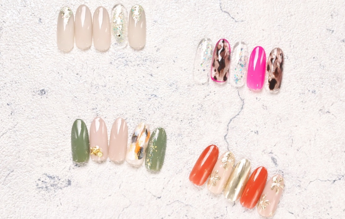 当コースでは、季節限定や定番のデザインから好みのものを選んでジェルネイルを体験できます。一人ひとりの希望に合わせて爪の長さと形を整え、甘皮処理をした後、ジェルネイルを施します。最後は、爪の美容液で保湿して仕上げ。