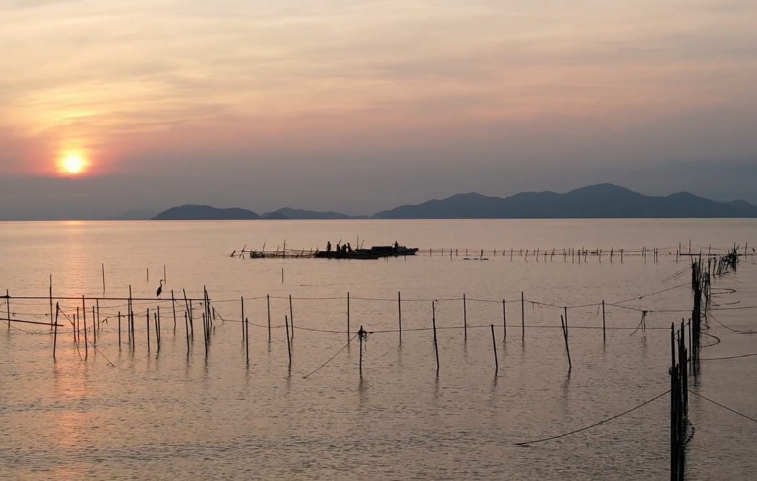 琵琶湖の西岸にある和邇(わに)漁港から漁船に乗り込み、まだ真っ暗な湖へと出発。漁船ならではの臨場感を味わいながら湖面を駆け抜け、琵琶湖の伝統漁法「エリ漁」のポイントまで船で移動。1000年以上続くと言われるエリ漁の解説を聞いた後、1つ目の網を引き上げます。1時間ほどの漁の後、2つ目のエリへ移動し、さらに網を引き上げます。どんな魚がどのくらい穫れるかは、季節やその日の環境次第。自然の恵みや厳しさを体験できる瞬間です。