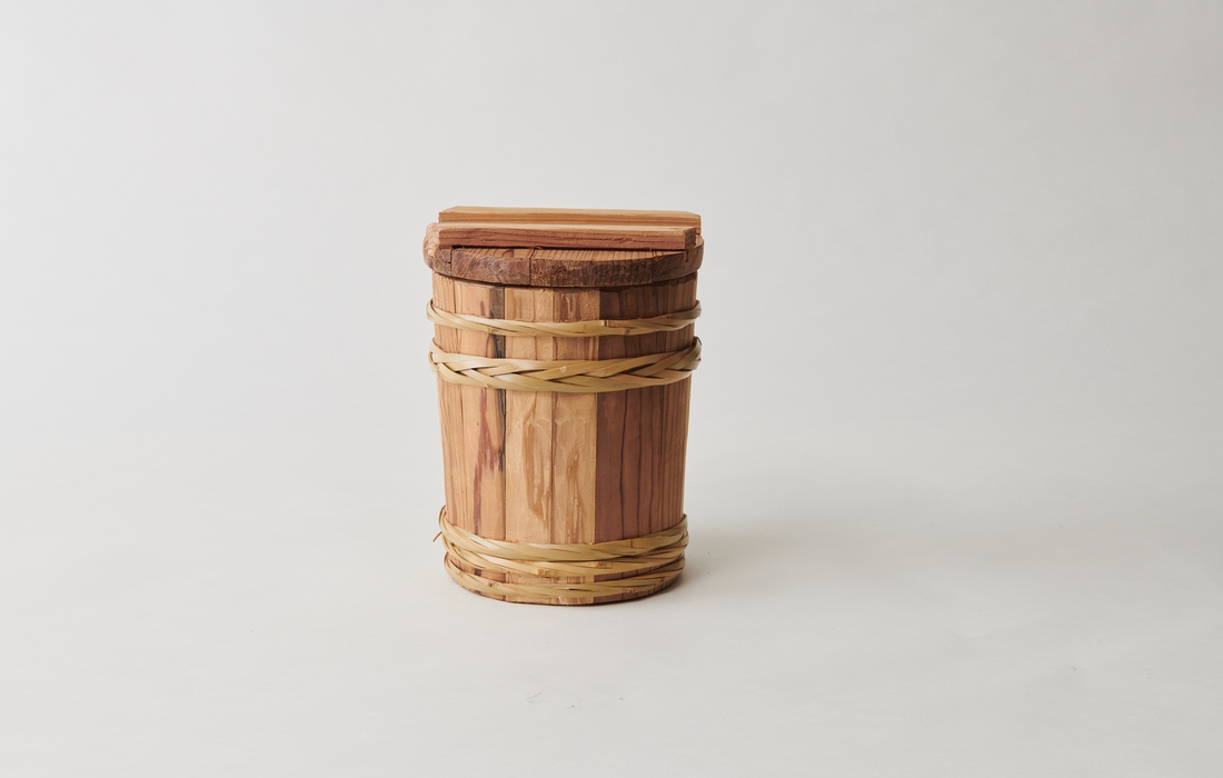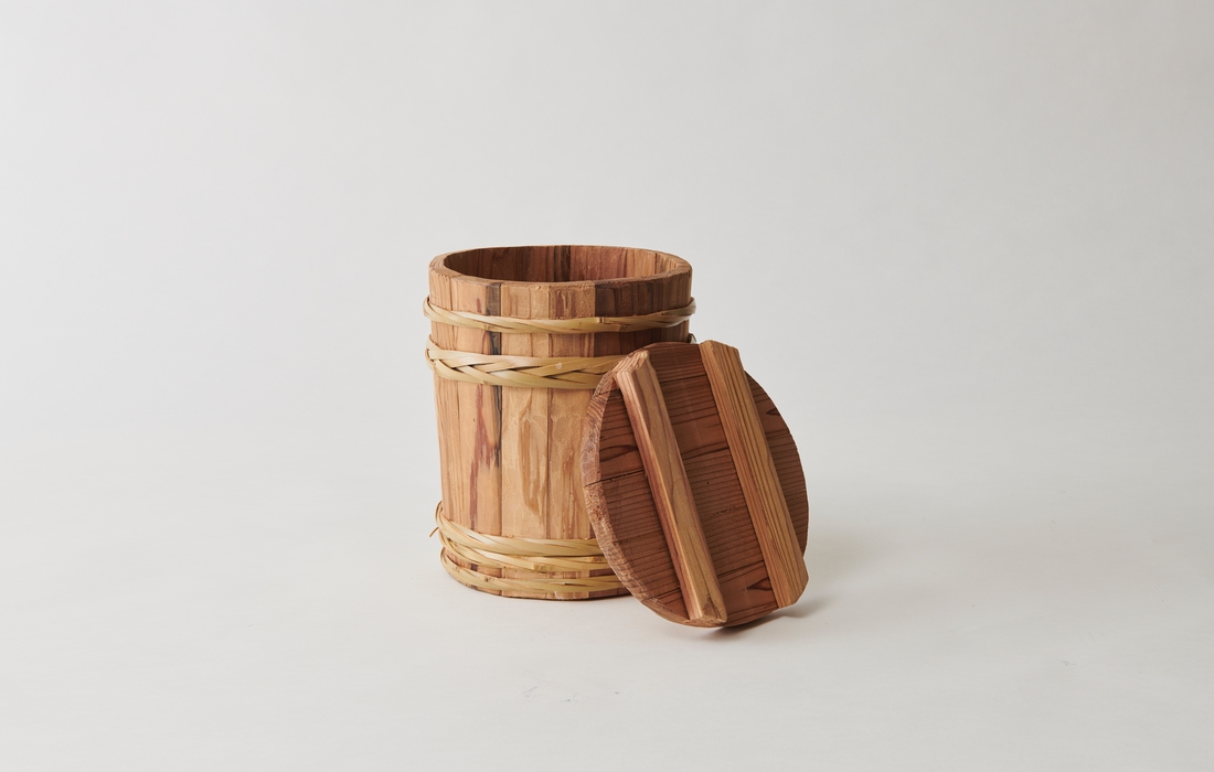 国産杉のクラフト木桶でみそを仕込めるキットです。木桶は職人手作りのこだわりの一品で、使っているとみそに有用な微生物たちが住み、みそに独特の旨みや深みが生まれます。