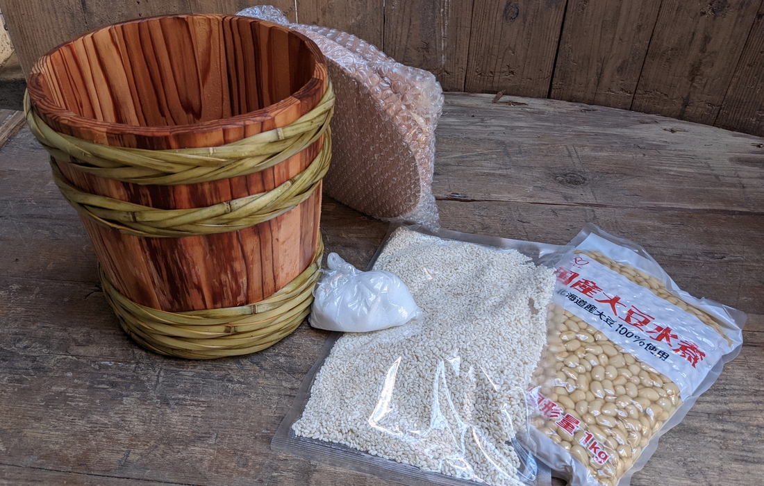 ・みそ作りキット2kg(水煮大豆 1kg・米こうじ 500g・塩 200g・作業用袋 大/小各1枚・手前みそ仕込みハンドブック・蔵元問い合わせサービス)