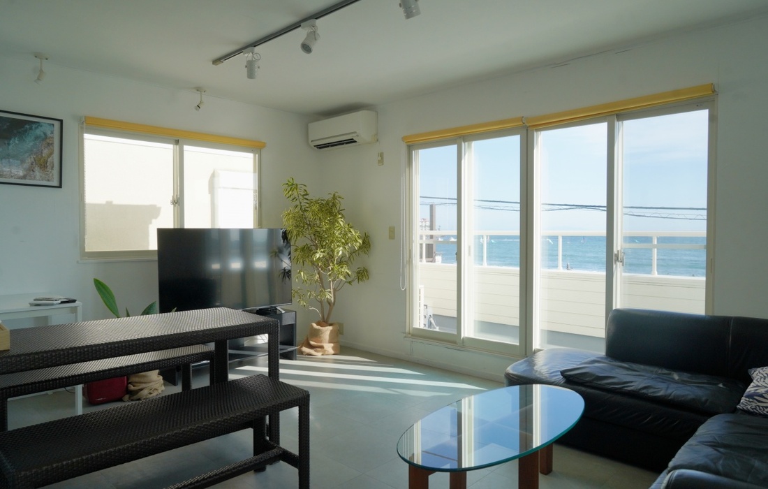 材木座(ざいもくざ)は、神奈川県鎌倉市の南東部、由比ガ浜の東側に隣接する沿岸地域。「Zaimokuza SOLA(ザイモクザ ソラ)」は、海とともに時間を過ごせる貸切ヴィラで、材木座海岸にほど近い、開放感あるロケーションが自慢です。天気の良い日には夕日や富士山も望めます。