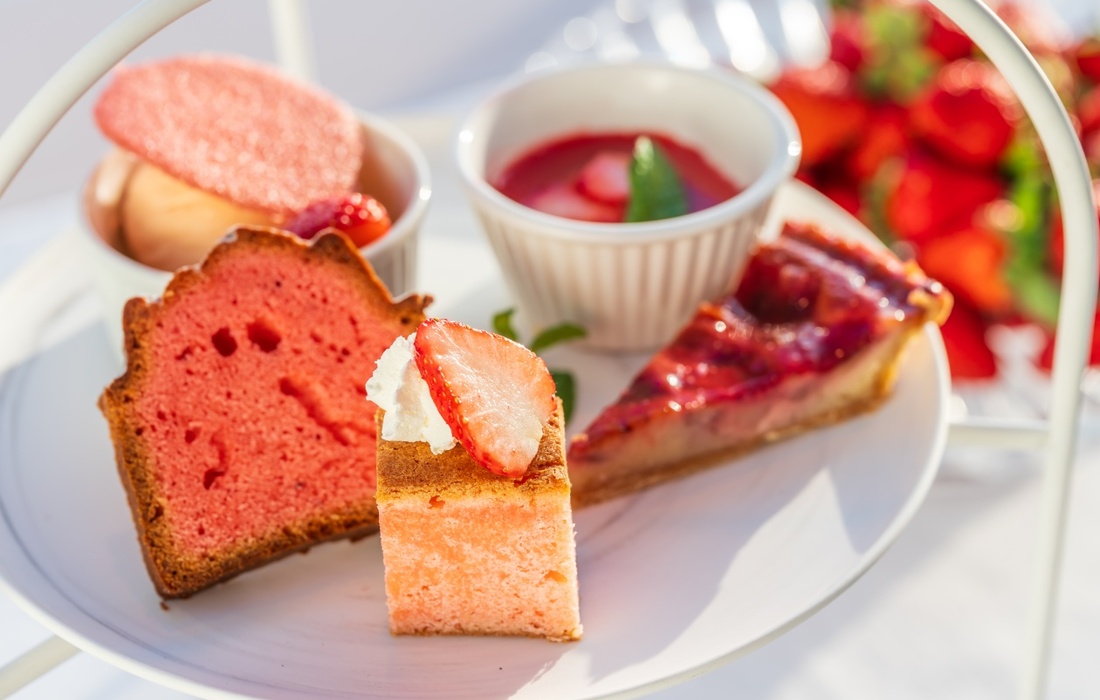 アフタヌーンティーのテーマはいちご。真っ赤ないちごが演出する、甘酸っぱい誘惑を午後のひとときに優雅に味わえます。今年は、多彩なスイーツに加え、名だたる人気店を手がけ、“畑の伝道師”と呼ばれる渡邉明シェフ厳選のフレッシュいちごが船上に初登場します。