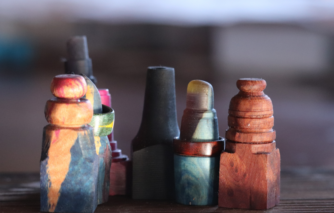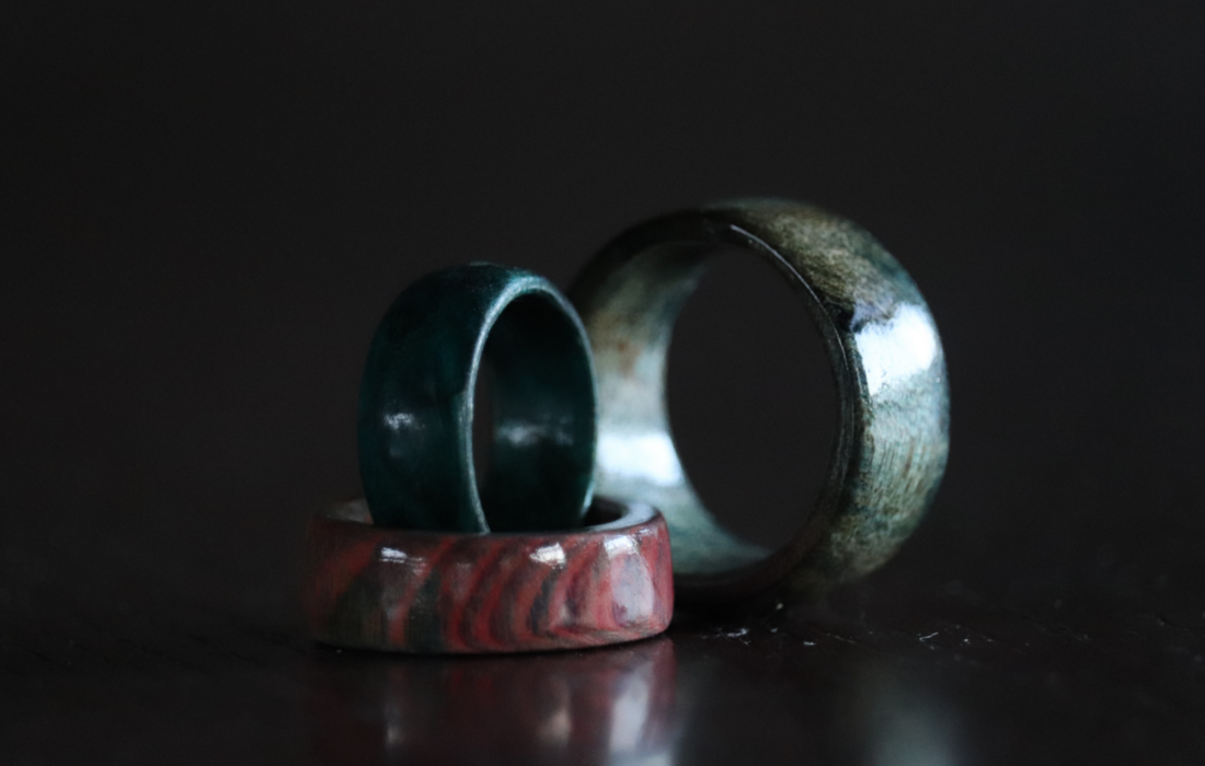 スタビライズドウッドは、乾燥させた木材に着色した樹脂を染み込ませ硬化させた、天然木と人工素材のハイブリッド素材。鮮やかで複雑な模様と美しい光沢が魅力で、北米やヨーロッパのクラフトマンやコレクターの間で人気が高まっています。