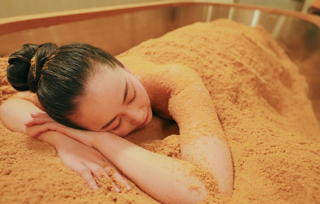電気やガスなど人工熱源を使わず微生物の発酵熱で温められた香り豊かなパウダーで全身をじっくり温めていきます。パウダーは定期的に総入れ替えをし、品質・衛生管理を徹底しています。木浴をしながらボディパックやフェイスパックも受けることができるため、健やかな肌環境へ導きます。