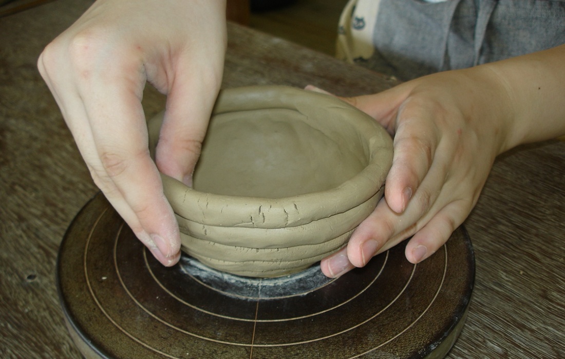 楢岡焼展示場・製土室・ロクロ室・登り窯を見学いただいてから陶芸体験をしていただきます。はじめに陶工が手びねりという手法で製作実演を行いますので、初心者の方でも安心です。「歪んだ」「ヒビが入った」「予定していた大きさにならなかった」等のトラブルにもできるだけ対応いたします。約2時間かけて納得のいく作品ができましたら、それ以降の工程は窯元が全て行います。およそ1ヶ月後、焼きあがりましたらお客様のお手元へお届けいたします。