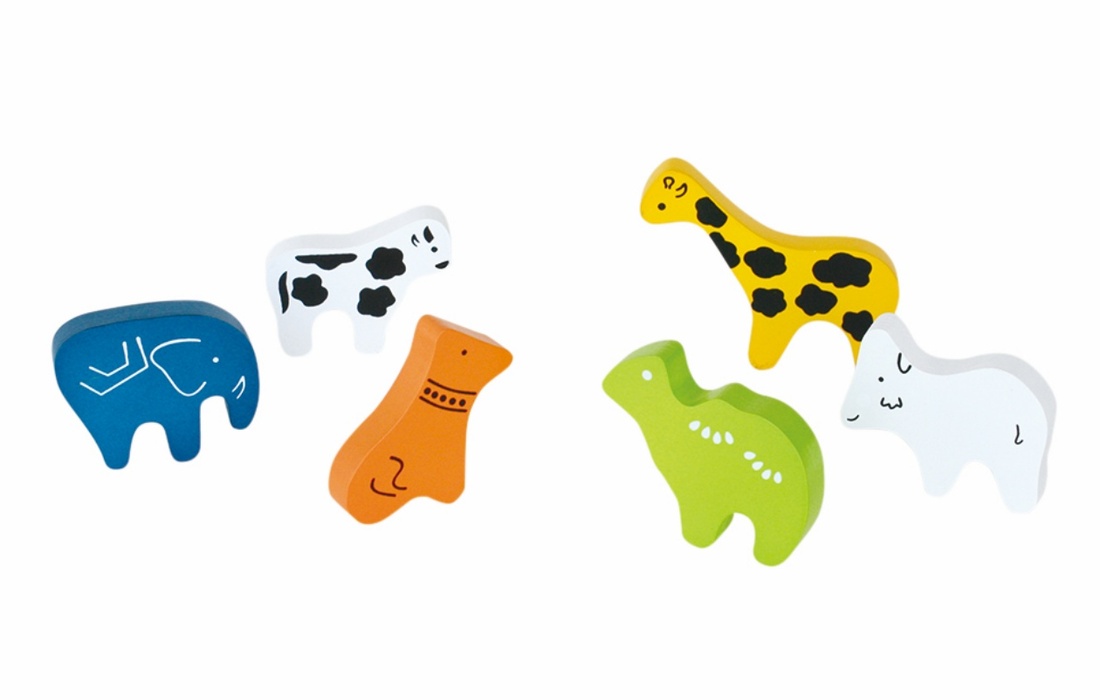 内容物:本体・ビーズコースター×各1、動物ブロック×6(ヤギ、キリン、カメ、イヌ、ウシ、ゾウ)