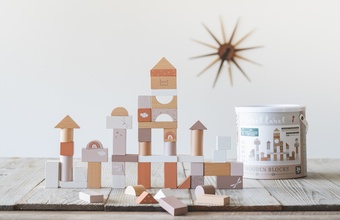 ベルギー生まれの木製おもちゃメーカー「LabelLabel(レーベルレーベル)」。淡い色合いと木の温かみが特徴的。小さい子どもが持ちやすいサイズ感で、初めての積み木としてもおすすめです。かわいい見た目ながら、50ピースと量が多く、さまざまな遊び方ができます。