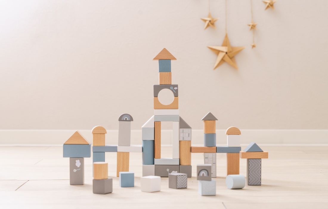 淡い色合いでインテリアにもなじむ、かわいい色合いの積み木で、親子でふれあいの時間をお楽しみください。