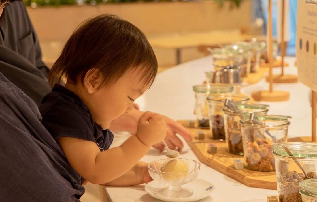 「ITOCHU SDGs STUDIO」は2021年4月にオープンした、SDGsを身近に感じてもらうための情報発信・体験の場。スタジオ内にはキッズパーク(無料・要予約)やこどもの視点カフェなど小さな子どもと一緒に楽しめる施設などが並びます。当コースでは、「おいしく、楽しく、サステナブルな食体験を提供するレストラン」がコンセプトの「星のキッチン」で食事を楽しめます。