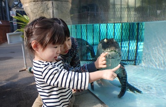 体長4メートルを超えるイリエワニをはじめ、16種(交雑含む)約130頭のワニが飼育され、ワニの種類としては世界一を誇ります。ガラス水槽越しに見えるワニの立ち姿や、大きな鶏肉のかたまりを一口で食べる食事シーンなど、迫力あるワニの様子を見ることができるでしょう。